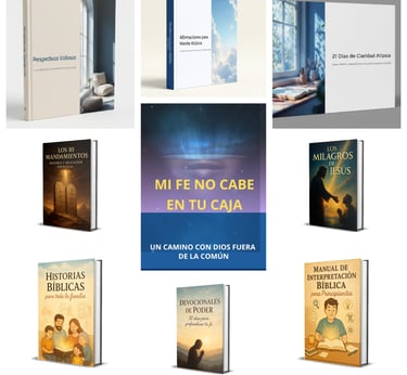 Al adquirir MI FE NO CABE EN TU CAJA hoy, recibirás totalmente GRATIS estos 5 regalos exclusivos que complementarán tu estudio y crecimiento espiritual: